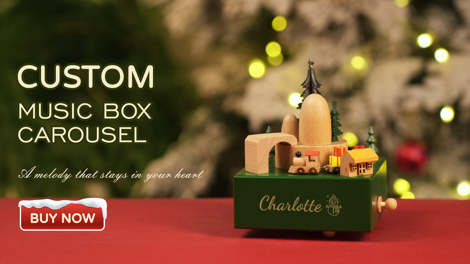 Musical Wooden Ballerina Carousel Keepsake, Engraved Name Music Box, Personalized Wooden MusicBox