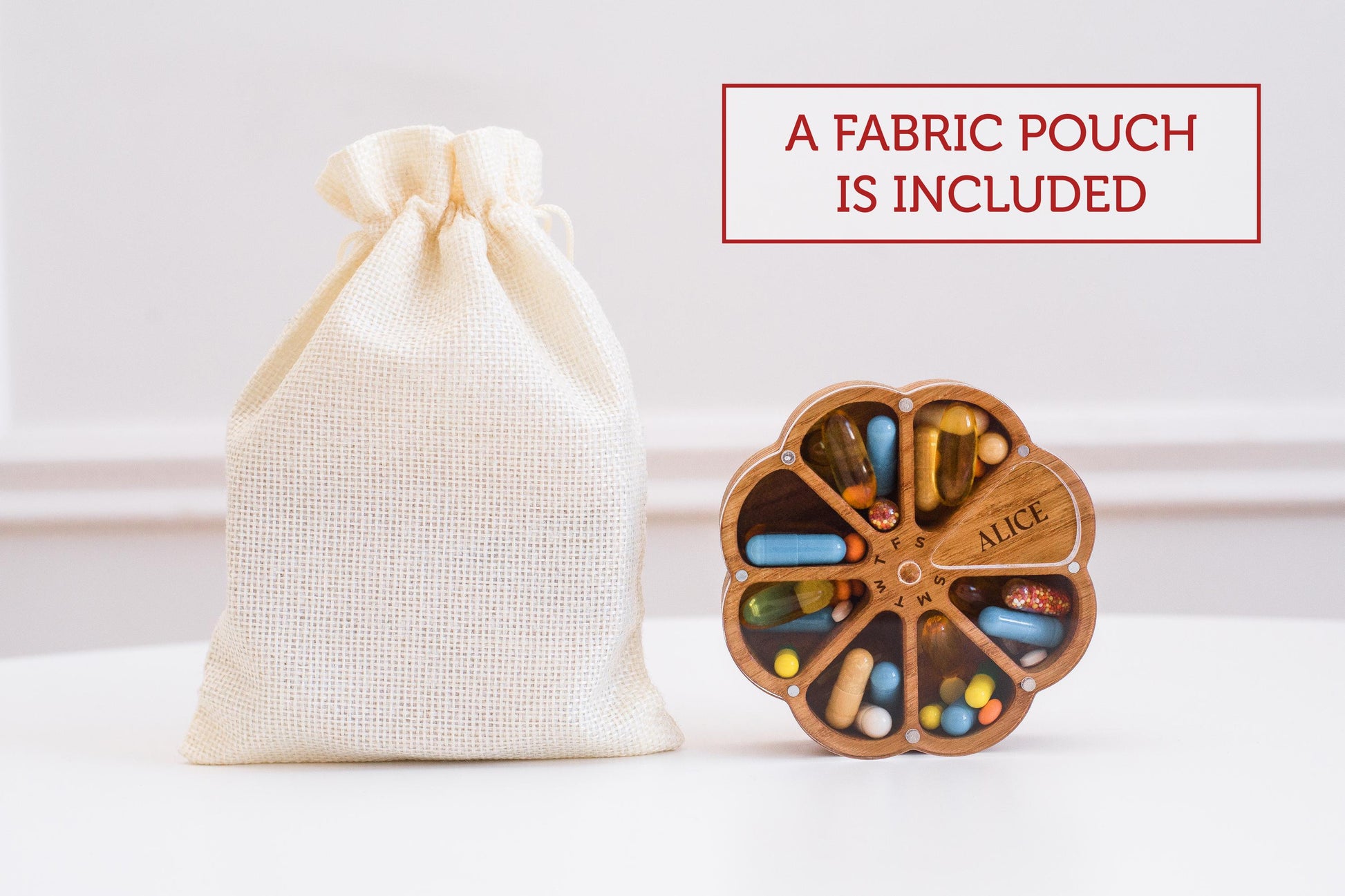 Daily Pill Organizer, Pill Container, Weekly Pill Box, Wooden Pill Case 7 Day, Vitamin Organizer