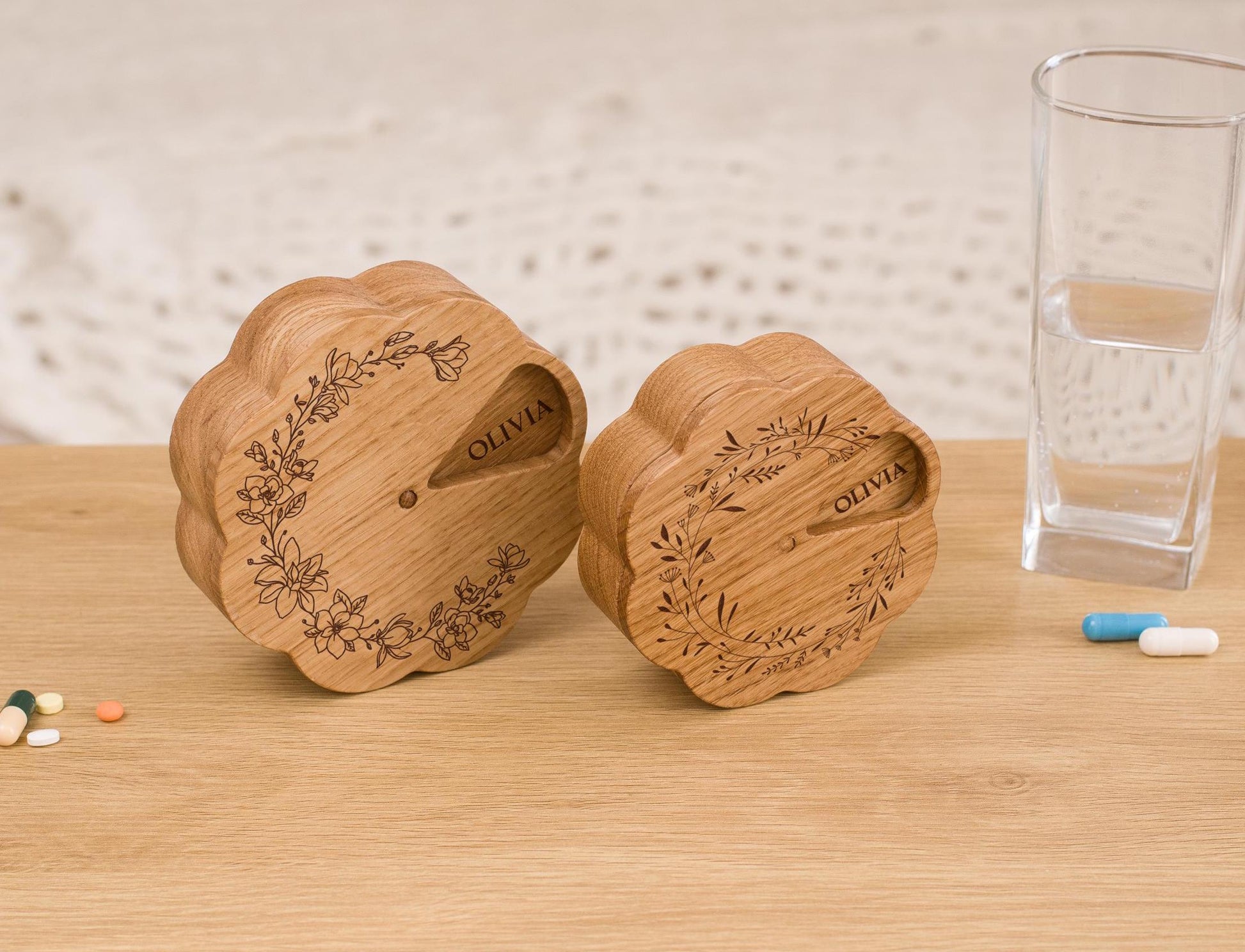 This wooden pill box can be personalized with your logo, making it a perfect option for corporate gifts or branded accessories.