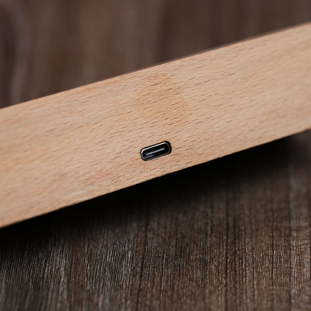 - Acrylic + Wooden Base + Integrated LED Lighting + Convenient USB cable wire